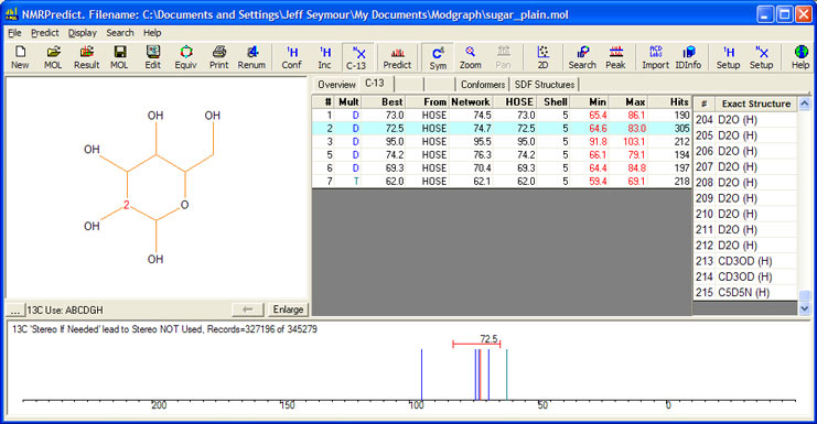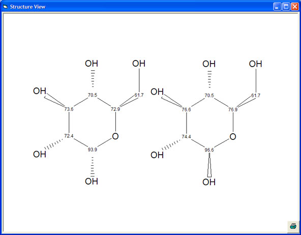 It can also be seen that NMRPredict is able to differentiate between the alpha and beta configurations of the molecule.